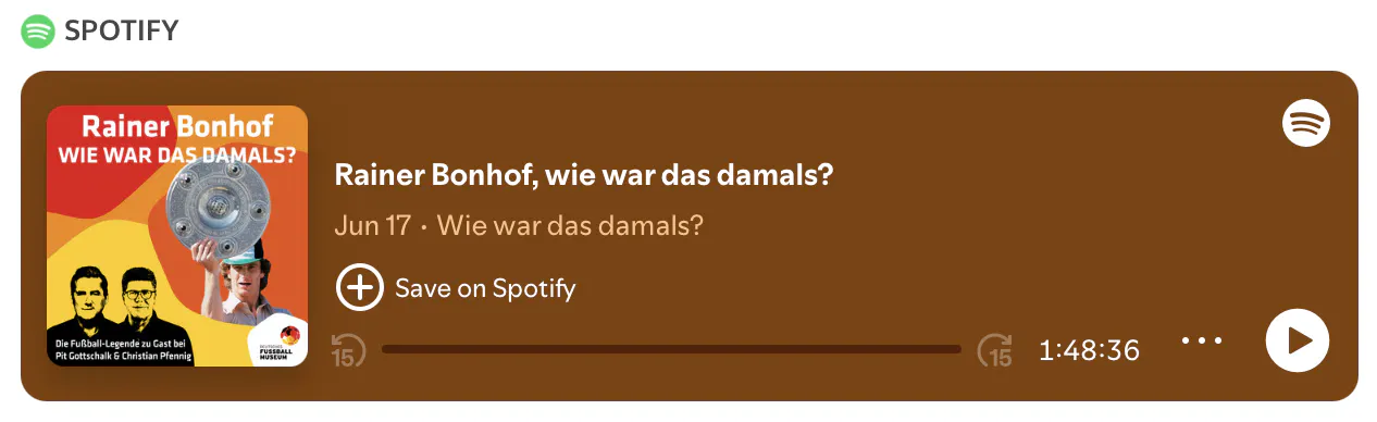 Und das war nicht die einzige Anekdote, die der Semi-Holländer erzählt hat. Ich empfehle an diesen heißen Tagen, mal in den Podcast reinzuhören (Öffnet in neuem Fenster). Ich verspreche: Die Zeitreise in Rainer Bonhofs Karriere lohnt sich garantiert!