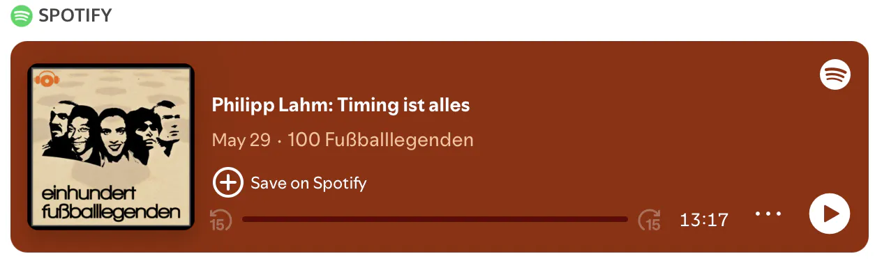 Er war nie der Lauteste, nie der Schnellste, nie der Schrillste. Und trotzdem wurde Philipp Lahm zu einer der größten Figuren, die der deutsche Fußball je hervorgebracht hat. Weltmeister, Champions-League-Sieger, Kapitän – aber vor allem: ein Stratege mit Gespür für den perfekten Moment. In dieser Episode der 100Fußballlegenden erzählt Malte Asmus die Geschichte eines Mannes, der immer wusste, wann man laufen muss – und wann stehenbleiben. Der selten zur falschen Zeit am falschen Ort war. Und der gezeigt hat, dass leise Töne manchmal mehr Wirkung haben als jede Kampfansage. Vom kleinen Jungen beim FC Bayern über die Leihstation in Stuttgart, das Sommermärchen 2006, den Kapitäns-Aufstand 2010 bis zum WM-Triumph in Rio: Philipp Lahm hat Fußballgeschichte geschrieben. Nicht mit Pathos. Sondern mit Plan. Und mit perfektem Timing.. Zum Podcast: Hier klicken! (Öffnet in neuem Fenster)