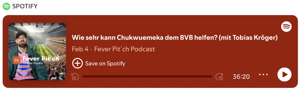 Das Transferfenster ist zu. Der Deadline Day ist Geschichte. Doch trotz drei Transfers gibt es bei Borussia Dortmund mehr Fragen als Antworten. Carney Chukwuemeka (Chelsea) und Daniel Svensson (Nordsjaelland) kommen per Leihe. Torhüter Diant Ramaj kommt fest, wurde aber direkt weiter nach Kopenhagen verliehen. Bringen diese Deals das Team des neuen BVB-Trainers Niko Kovac wirklich nach vorne? Darüber spricht Max Ropers heute im Fever Pit'ch Podcast (Öffnet in neuem Fenster) mit Tobias Kröger, Marktwert-Koordinator bei Transfermarkt.de. Die beiden bewerten nicht nur die Transfers beim BVB, sondern auch die Leihe von Bayern-Juwel Mathys Tel. Wird Bayern jemals wieder ein Ort, wo Talente Zeit für Entwicklung bekommen? Zum Podcast: Hier klicken! (Öffnet in neuem Fenster)