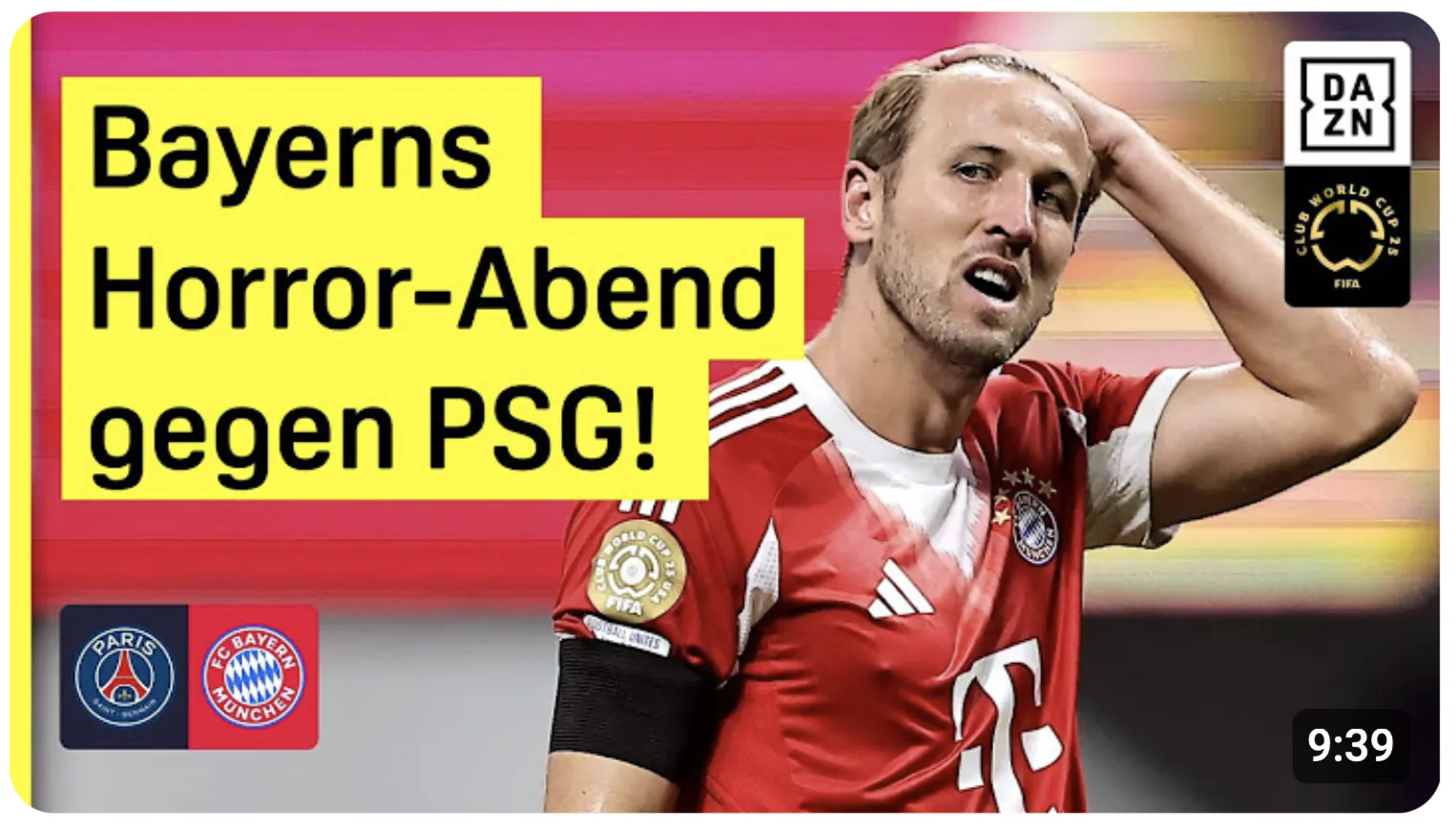 Ich kann mich nur an zwei Szenen in der Fußballgeschichte erinnern, die mich ähnlich aufgewühlt haben wie die kurz vor der Halbzeitpause des Klub-WM-Viertelfinals PSG gegen Bayern: Wie Ewald Lienen 1981 mit fies aufgeschlitztem Oberschenkel und rausquellenden Muskel-oderwasweißich-Strängen über den Platz rennt und sein Unglück nicht fassen kann. Und Christian Eriksen, der bei der EM 2021 wie tot am Boden liegt und in Wirklichkeit um sein Leben kämpft und zum Glück gewinnt.