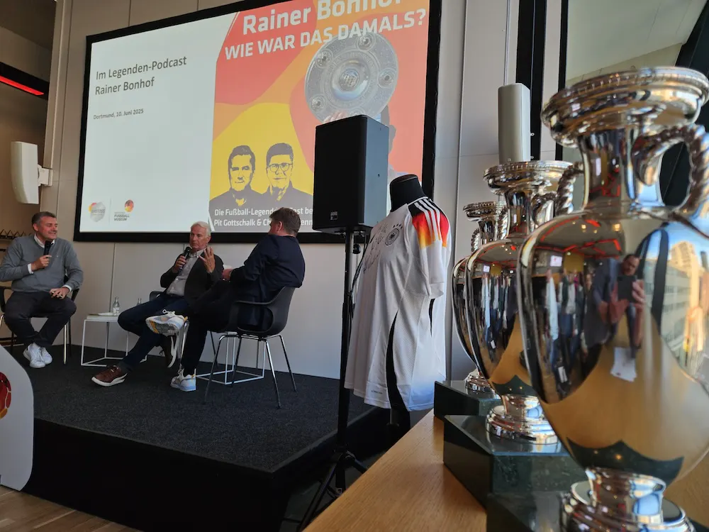 „Ich habe für Deutschland gegen die Niederlande gespielt, da war ich noch Holländer.“ Mit dieser Anekdote startet Rainer Bonhof in ein Gespräch voller Geschichten, Skurrilitäten und Fußballhistorie – im Legenden-Podcast „Wie war das damals?“ aus dem Deutschen Fußballmuseum in Dortmund. Bonhof spricht bei Pit Gottschalk und Christian Pfennig über prägende Momente seiner außergewöhnlichen Karriere – von der Nationalitätenfrage im Juniorenalter bis zum emotionalen WM-Finale gegen die Niederlande. Zum Podcast: Hier klicken! (Öffnet in neuem Fenster)